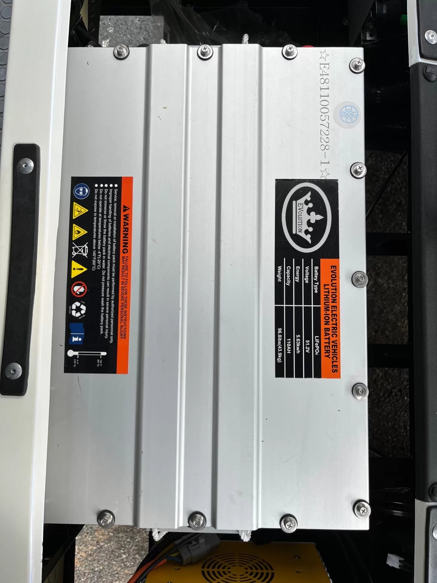 Included with purchase (may vary by configuration): cart chassis, 4 seats, 48V lithium battery pack, charger, keys, owner documentation, and standard accessories.