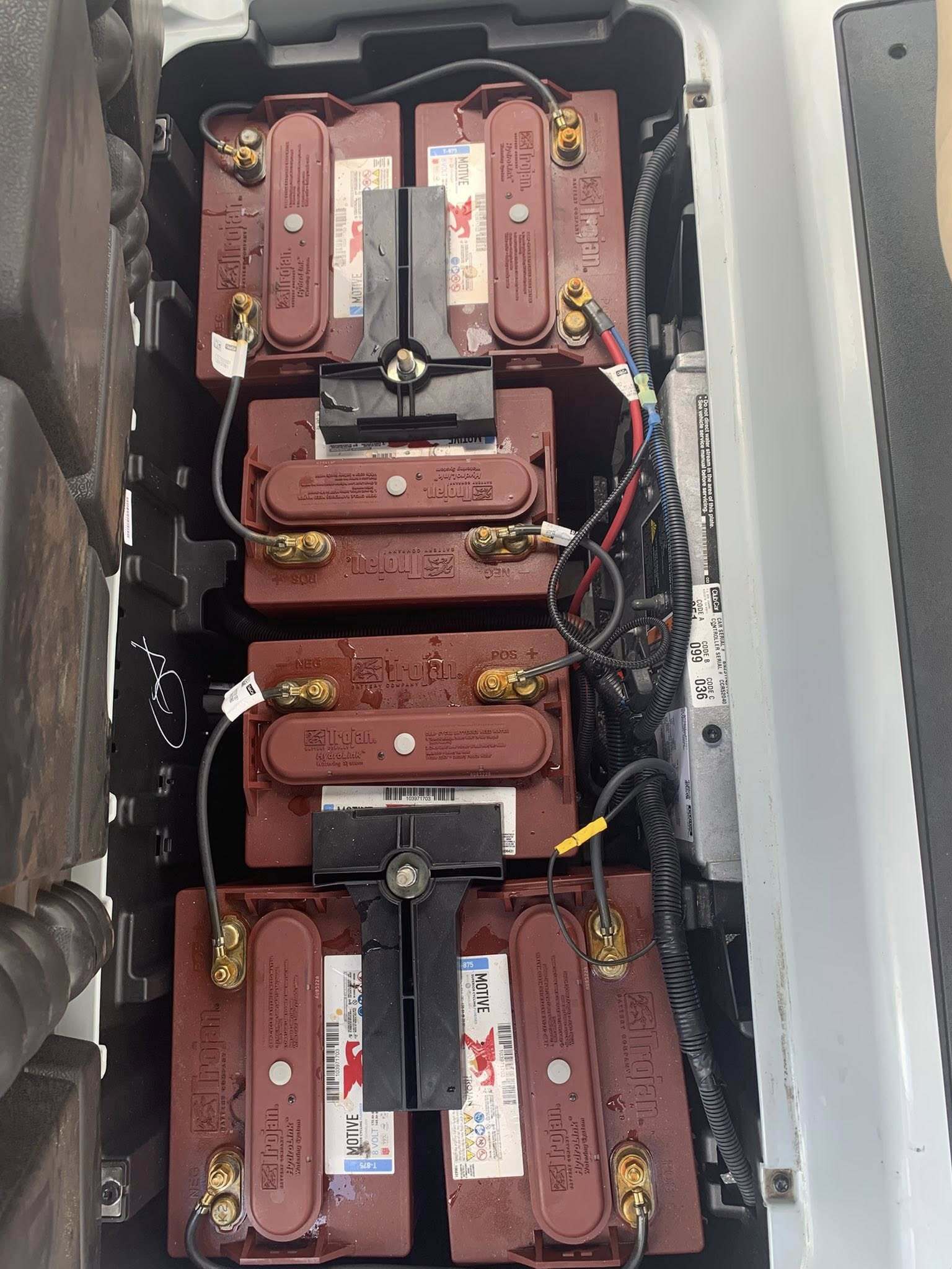 Included at delivery (varies by configuration): cart chassis, 2 seats, 48V battery pack, onboard charger, keys, tool kit, and user documentation. Colors and accessories may differ by build.